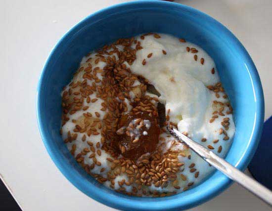 یک قاشق غذاخوری تخم کتان را با حدود یک چهارم یا یک سوم لیوان کفیر مخلوط کنید. آن را قبل از صبحانه و سپس دوباره قبل از خواب مصرف کنید. شما می توانید یک مقدار طعم دهنده دارچین را برای طعم و مزایای سلامتی بیشتر اضافه کنید.