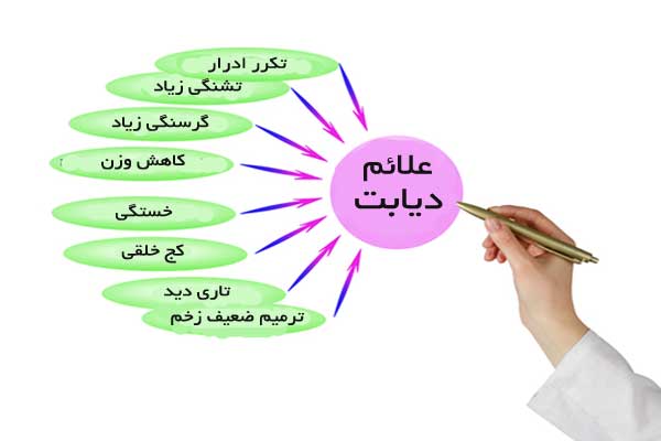 دیابت یکی از بیماری های مزمن شایع در سراسر جهان است این مقاله علائم ابتلا به دیابت و عوارض آن را توصیف می کند. دیابت یک سندرم بالینی با سطوح مطرح شده از سطح قند خون به علت کمبود انسولین (مطلق و یا نسبی) است. دیابت که بیشتر به دو نوع عمده متفاوت: نوع دیابت نوع 1 و دیابت 2 است.