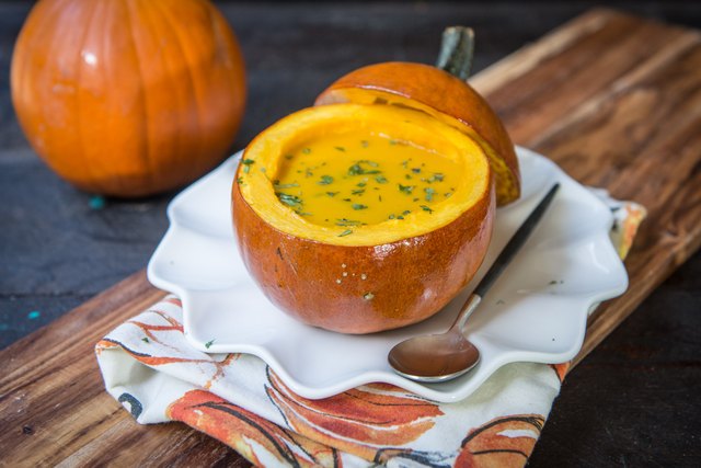 با یک سوپ پاییزه مانند سوپ کدو گردویی یا سوپ سیب زمینی شیرین داخل ان را پر کنید.